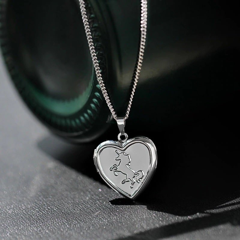 Μενταγιόν Καρδιά με σκαλισμένο Μονόκερο