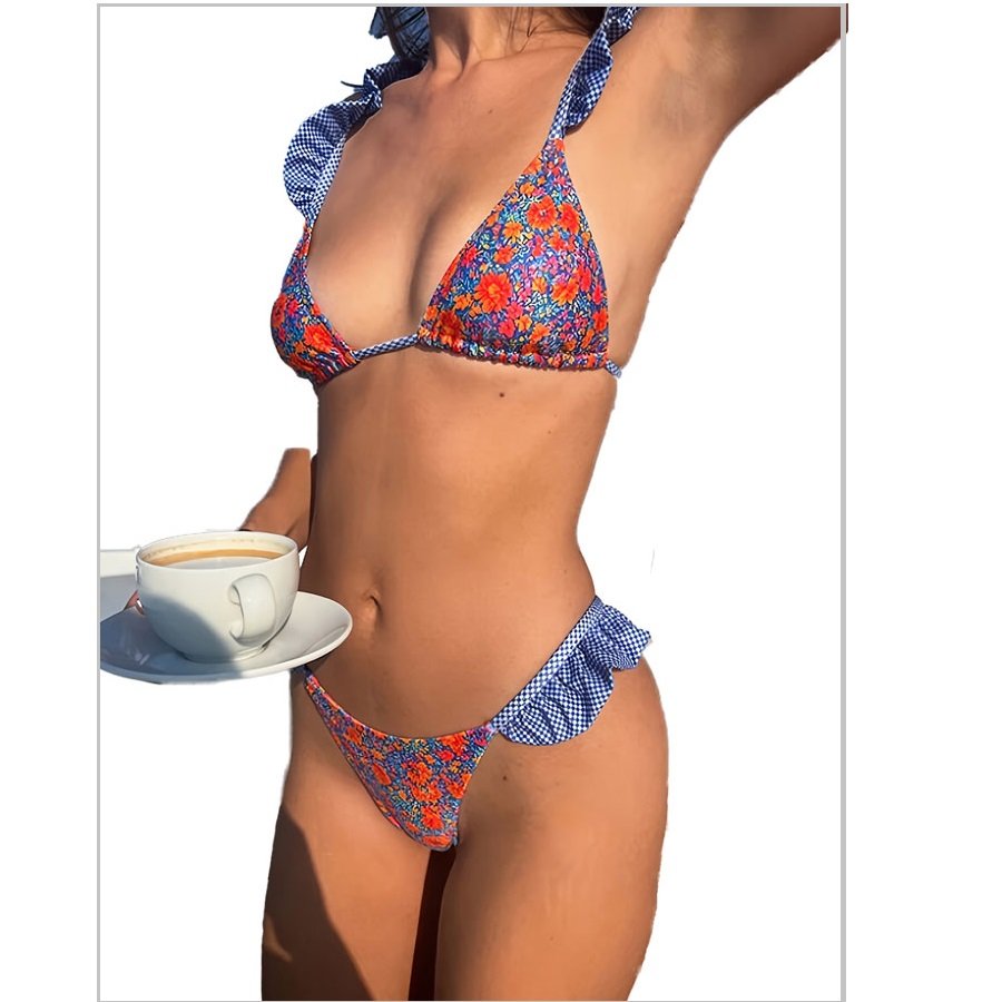 Μοντέρνο Λουλουδάτο Μπικίνι σετ με όμορφους Φραμπαλάδες