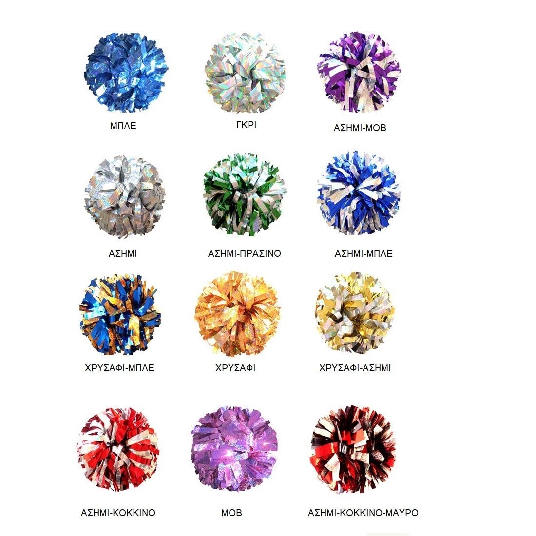 Pom Pom Μαζορέτας Cheerleader Professional Laser Holograpchic με πλαστικές λωρίδες